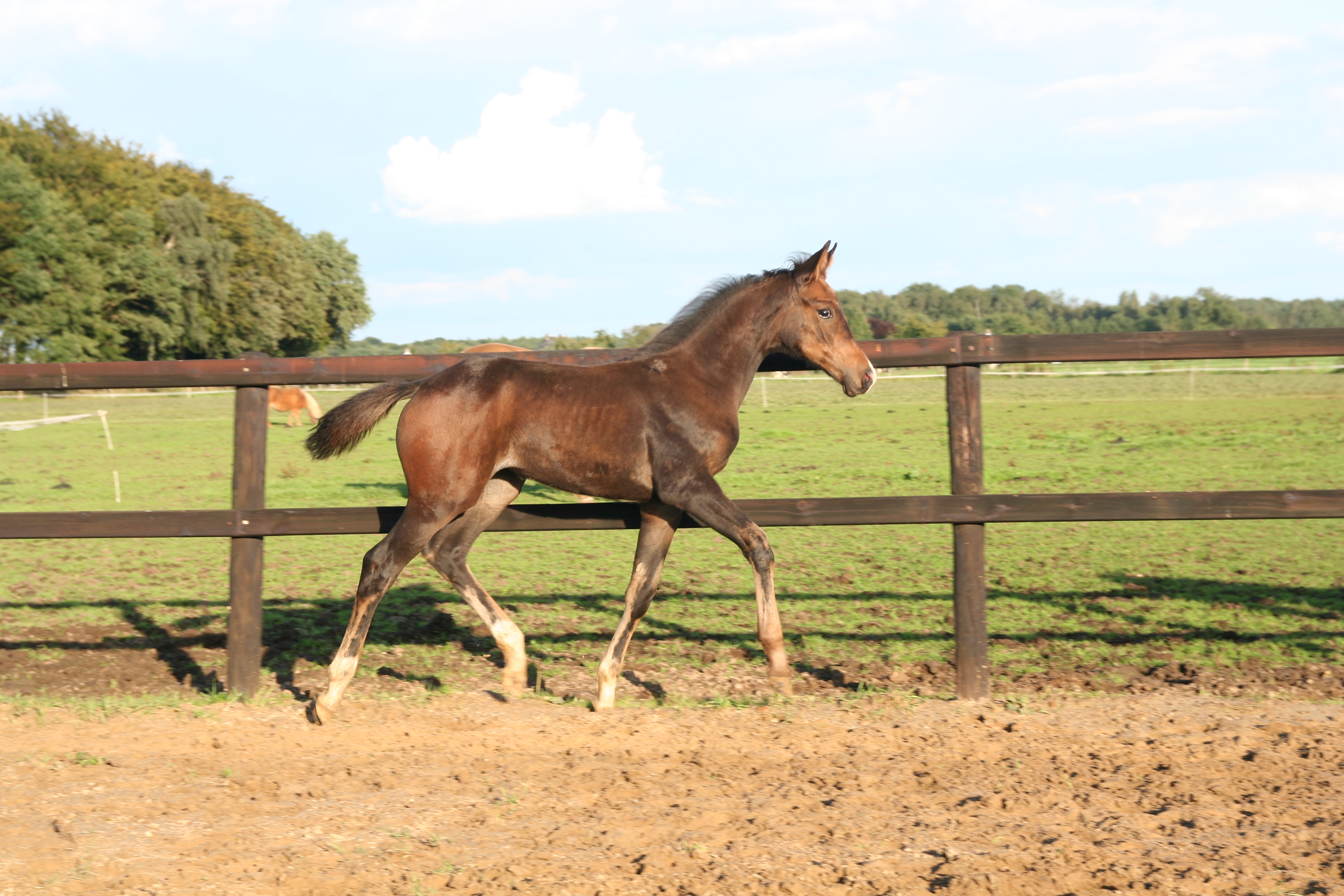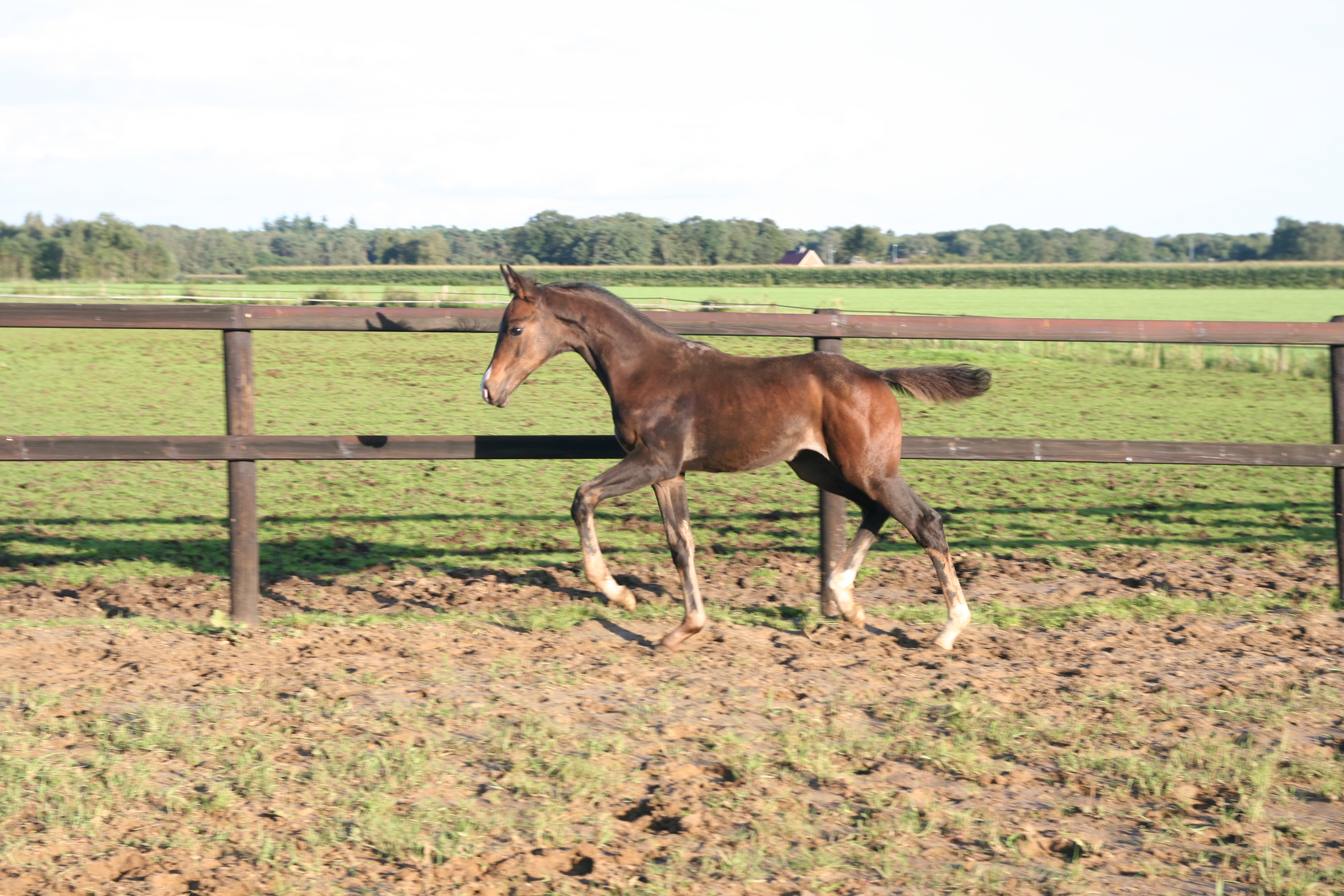 | Aftekening: | Wordt donker bruin met drie witte sokjes |