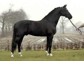 Special D![]() Special-D is een royaal ontwikkelde rijtypische hengst, die goed in het rechthoeksmodel staat. Het hoofd is zeer sprekend, de hals is mooi gevormd en heeft veel bespiering. Special-D is een zoon van de stempelhengst Métall. Via moederskant steunt Special-D op bewezen bloed met veel bewegingskwaliteiten, zoals Zandigo, Farn en Doruto. Special D is de overtuigende winnaar van de Pavo-Cup voor 4 jarige dressuurpaarden in 2003. Tijdens de hengstencompetitie 2003/2004 behaalde hij een mooie 2e plaats. Special D heeft in 2004 zeer goed gepresteerd in Verden bij de Wereldkampioenschappen dressuur met een gemiddeld cijfer in de finale van 8,38. Tijdens de hengstencompetitie 2004/2005 bijhaalde hij een 2e plaats. Special-D is succesvol uitgebracht door Diederik van Silfhout in de Lichte Tour, met als resultaat hoge scores en mooie overwinningen. Special-D scoort ieder jaar een zeer hoog percentage ster/keur/elite merries. Meerdere malen is er een dochter van Special-D kampioen geworden van een Centrale Keuring. Elk jaar levert Special-D goed bewegende merries af op de Nationale Merrie Keuring. Een groot aantal dochters heeft een IBOP score boven de 80 punten behaald. De nakomelingen van Special D presteren opvallend goed in de dressuursport. Meerdere nakomelingen deden mee aan de finale van de Pavo Cup. De eerste nakomelingen van Special-D worden in de nationale dressuursport uitgebracht. Special-D heeft uit zijn eerste jaargangen al 2 KWPN goedgekeurde zonen, namelijk: Zanzibar en Andretti (winnaar hengstencompetitie 2009/2010). ![]() Als dressuurpaard heeft Special D. veel tot zeer veel aanleg en geeft zijn ruiter een zeer goed gevoel. Special D. is een eerlijke, betrouwbare hengst. Hij heeft veel bereidheid om te werken en laat zich goed bewerken. De stap is ruim, zuiver en actief. In de stap wordt het lichaam goed gebruikt. In draf heeft Special D. een goede ruimte. Hij draaft met zeer veel tact en heeft veel zelfhouding en zeer veel afdruk. In galop heeft Special D. veel ruimte. Hij galoppeert met zeer veel afdruk en veel houding. De zwarte Special D. is zeer geschikt voor het fokken van een modern dressuurpaard, kracht, charme en karakter. meer info: http://www.hhgebrvanmanen.com/ |